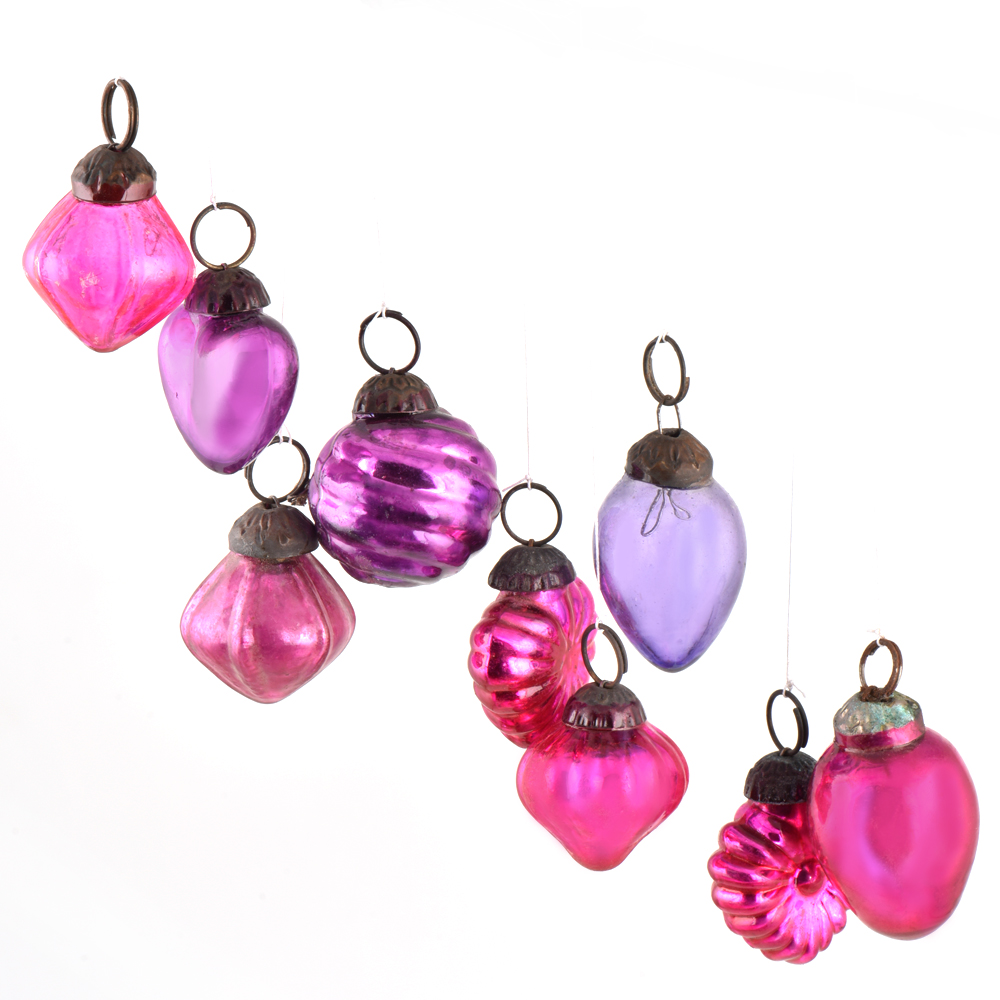 Indianshelf.com for bulk/wholesale orders.Indianshelf.us for personal purchases.Bring a touch of handmade elegance to your holiday celebrations with these Handmade Purple and Pink Mini Christmas Ornaments. This set of 9 beautifully crafted ornaments in an assortment of styles adds a unique, personalized touch to your tree, mantel, or holiday decor.