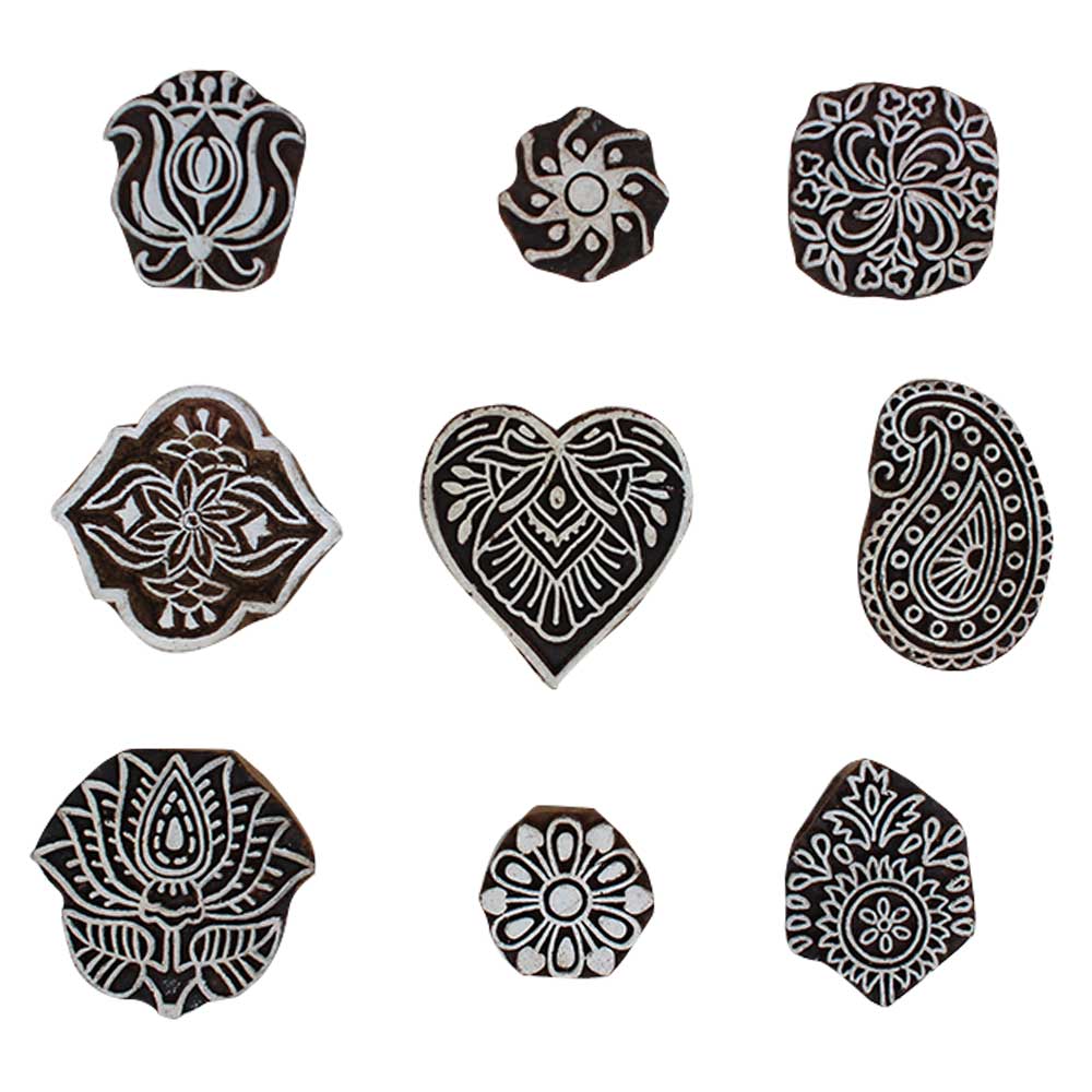 Set of 9 Piece New Mix Wooden Printing Block. Ideal for Using on Fabric, Paper, Canvas, etc. These Blocks can be use to Print with Oil Colors, Fabric Colors, Water Colors, Acrylic Colors and Vegetable Colors.