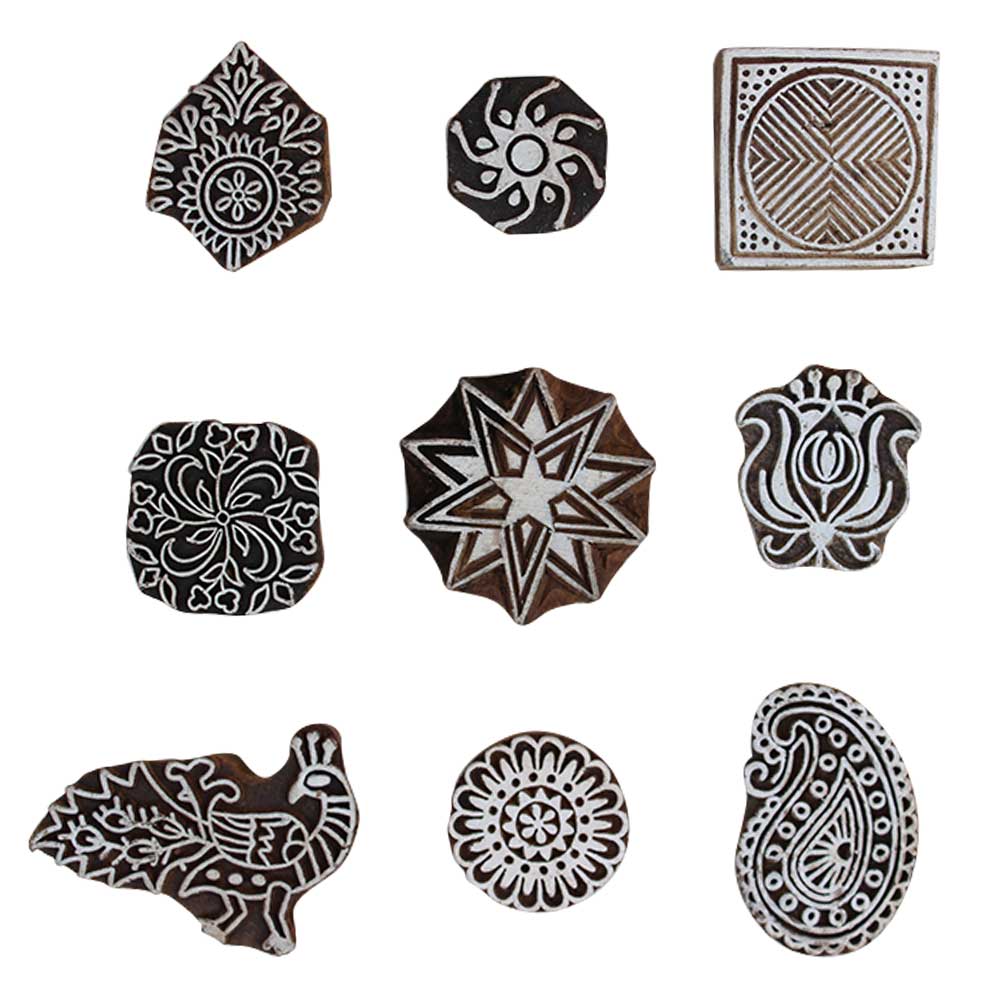 Set of 9 Piece New Mix Wooden Printing Block. Ideal for Using on Fabric, Paper, Canvas, etc. These Blocks can be use to Print with Oil Colors, Fabric Colors, Water Colors, Acrylic Colors and Vegetable Colors.