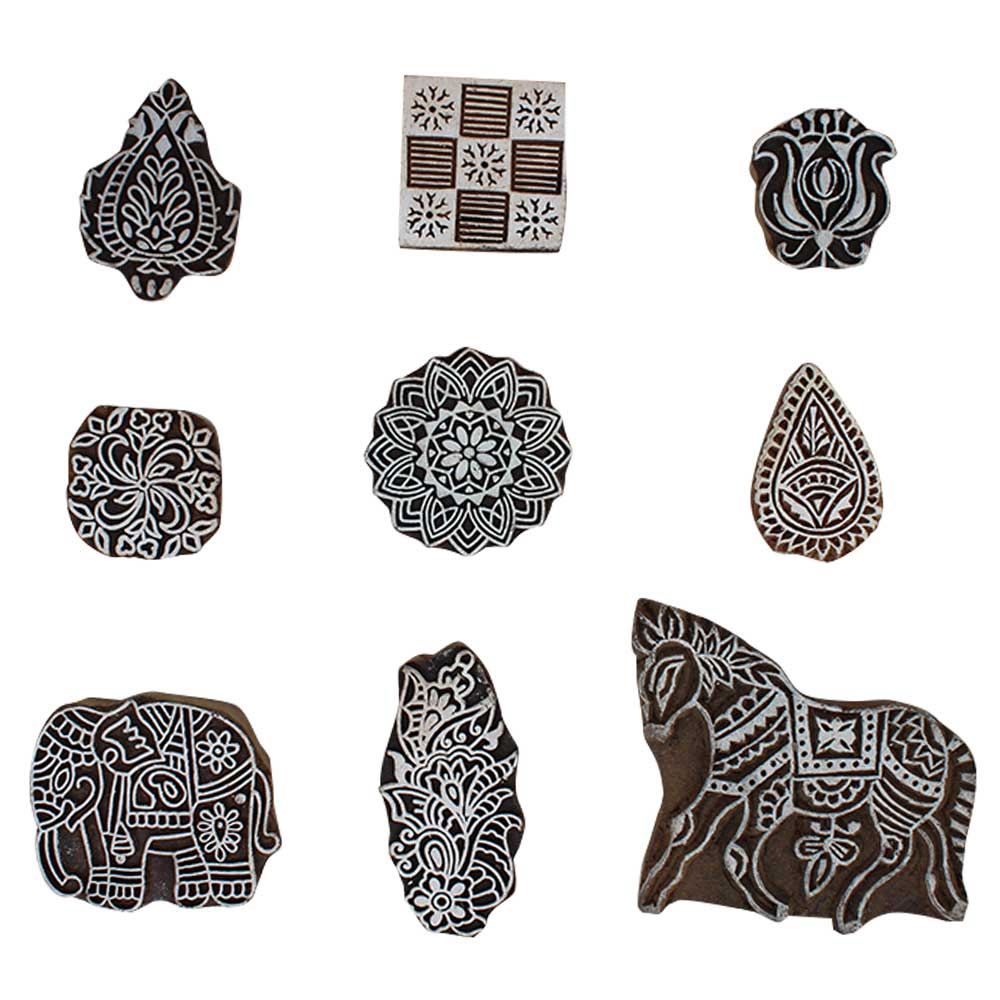 Set of 9 Piece New Mix Wooden Printing Block. Ideal for Using on Fabric, Paper, Canvas, etc. These Blocks can be use to Print with Oil Colors, Fabric Colors, Water Colors, Acrylic Colors and Vegetable Colors.