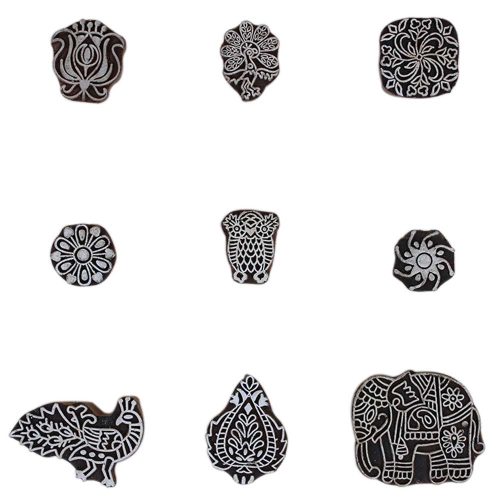 Set of 9 Piece New Mix Wooden Printing Block. Ideal for Using on Fabric, Paper, Canvas, etc. These Blocks can be use to Print with Oil Colors, Fabric Colors, Water Colors, Acrylic Colors and Vegetable Colors.