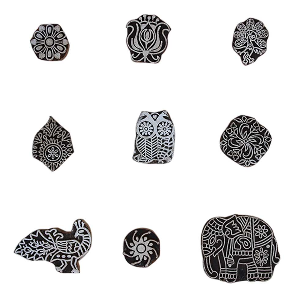 Set of 9 Piece New Mix Wooden Printing Block. Ideal for Using on Fabric, Paper, Canvas, etc. These Blocks can be use to Print with Oil Colors, Fabric Colors, Water Colors, Acrylic Colors and Vegetable Colors.