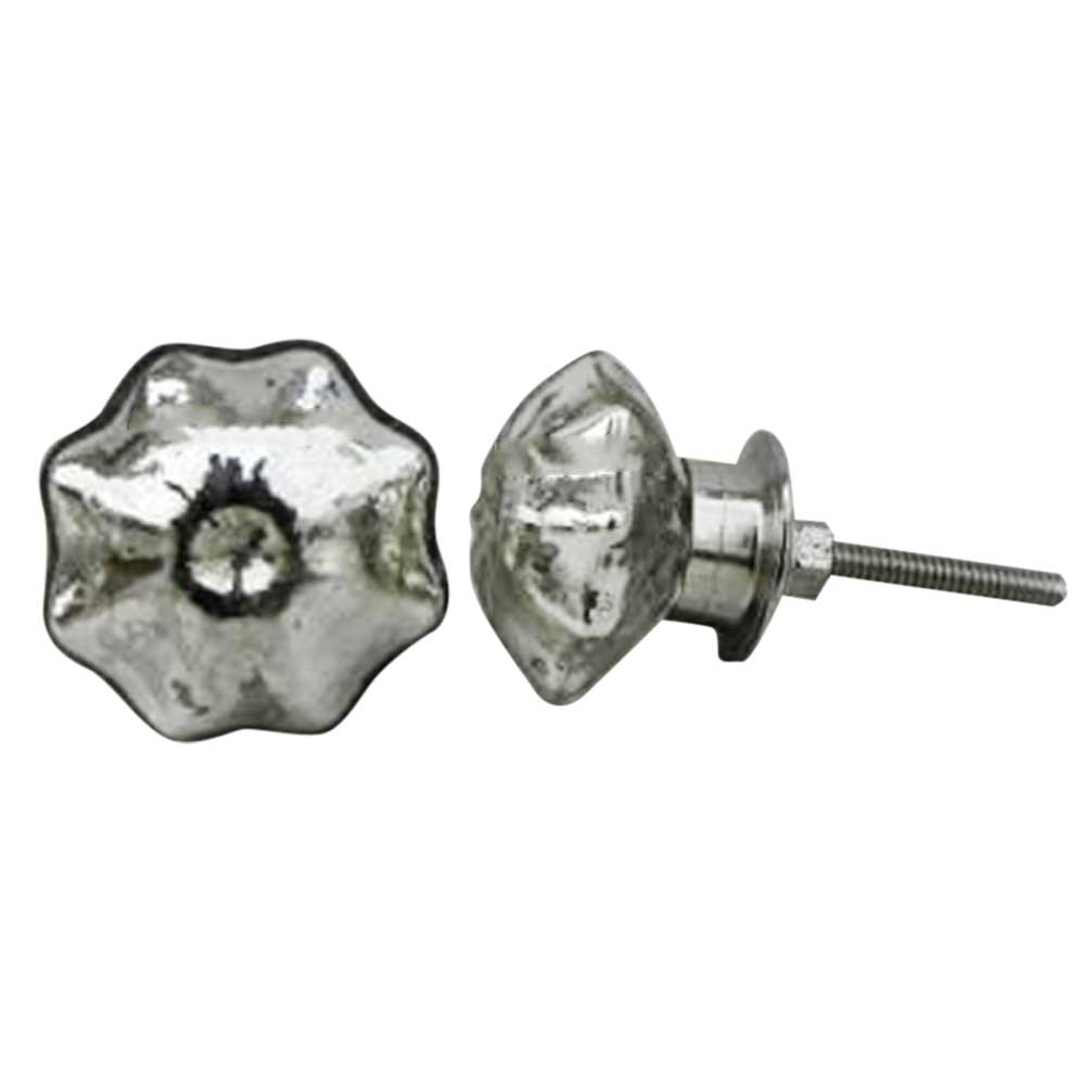 Shinning Silver Medium Glass Knobs. Ideal for Drawer, Dresser, Cabinet, Wardrobe, Cupboard and almirah