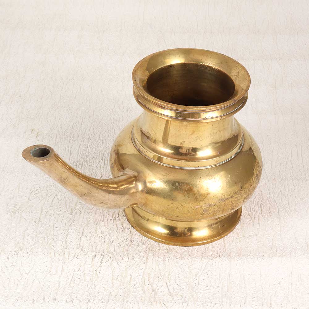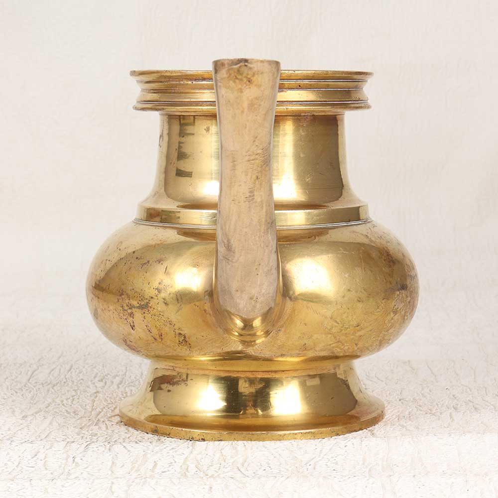Bring sacred beauty to your home with this stunning brass water pot. Crafted by skilled artisans, this shiny vessel features a graceful curved spout for easy pouring. This special pot elevates a simple act like fetching water into a divine ritual. The brass material and unique shape reflect centuries of Indian tradition. Use it to store pure water for rituals, offerings, or drinking. The smooth spout makes it easy to pour without spilling a single precious drop. Keep it in your puja room, kitchen, or bathroom to uplift your space with its holy aura. Bring the sacred into your everyday life with this gorgeous brass water pot. Its simple yet striking form honors Indian culture while adding antique elegance to your home.