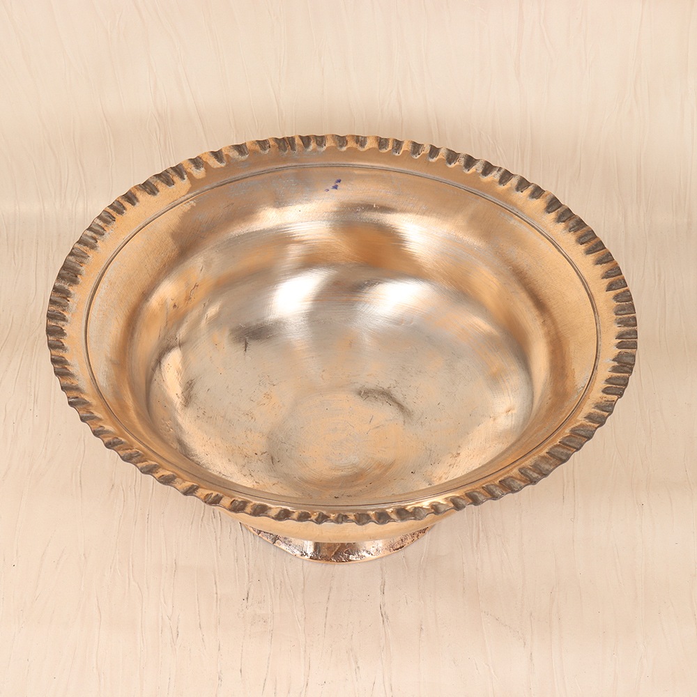 Elevate your kitchen with the captivating Copper Fruit Bowl - a stunning piece that blends timeless elegance and functional brilliance. This exquisite copper fruit bowl is more than just a practical kitchen accessory - it's a work of art that will infuse your space with the rich, captivating essence of Islamic design. The ornate patterns and warm metallic tones create a striking visual that instantly draws the eye and sets the tone for a refined, culturally-inspired atmosphere. Beyond its beauty, this bowl is a true workhorse in the kitchen. The generous size allows you to beautifully display an array of seasonal fruits, keeping them fresh and readily accessible. The durable copper construction ensures long-lasting use, while the lightweight design makes it easy to move and rearrange as needed. Whether setting the table for a dinner party or simply adding a touch of elegance to your countertop, the Copper Fruit Bowl is a must-have for the discerning homeowner who appreciates the intersection of form and function.