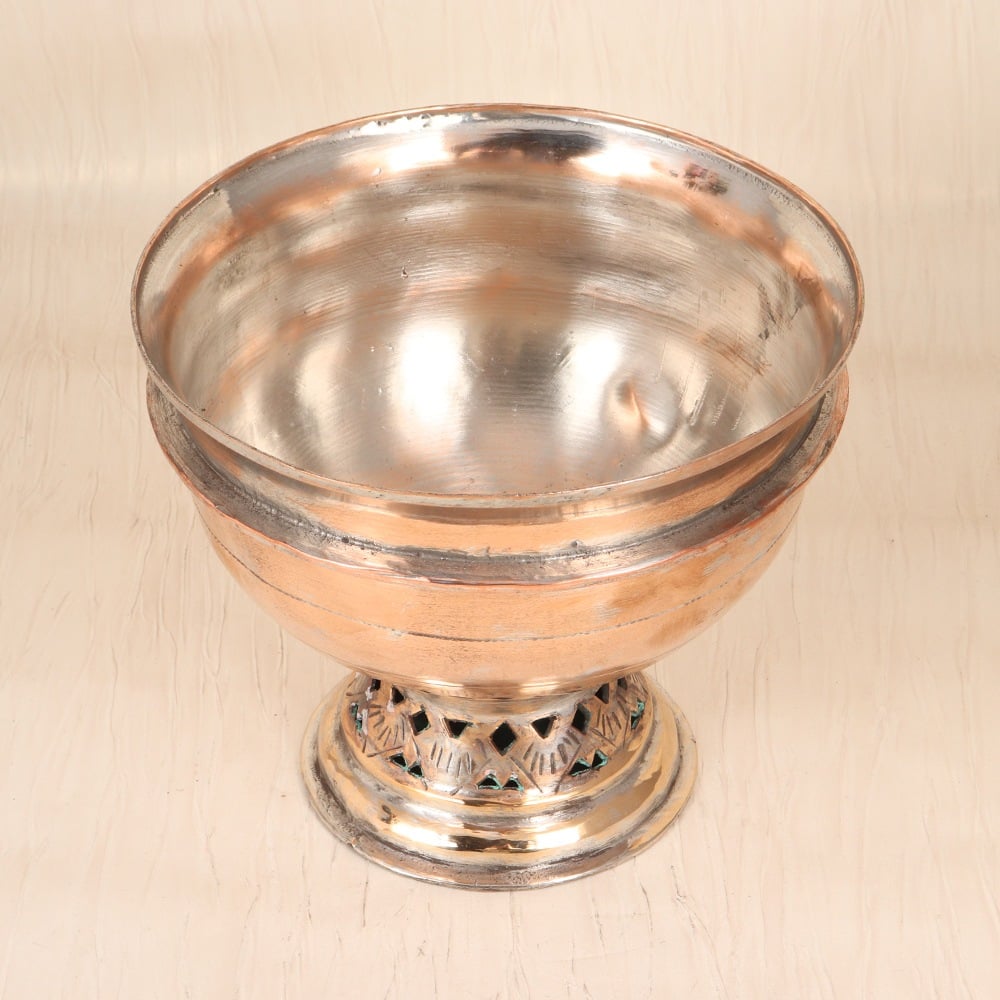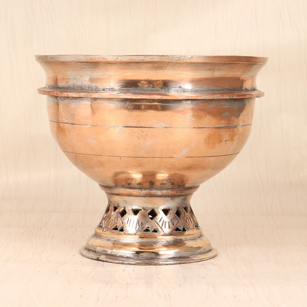 Elevate your floral arrangements with the stunning vintage copper pot in the iconic Islamic Art style. This captivating piece is the perfect accent to infuse your space with timeless elegance and cultural sophistication. Bring the beauty of Islamic artistry into your home with this one-of-a-kind copper pot. Its timeless design and premium construction make it a true investment piece that will elevate your floral displays and infuse your space with a sense of global sophistication. Whether you're a seasoned interior design enthusiast or simply seeking to add a unique, conversation-starting accent, this vintage copper pot is a must-have. This stunning piece is perfect for those who appreciate the rich history and captivating aesthetic of Islamic art. Display it proudly in your living room, entryway, or anywhere you want to create a warm, inviting ambiance. Fill it with your favorite blooms, greenery, or even use it as a stylish catchall – the possibilities are endless with this versatile and beautiful vintage copper pot.