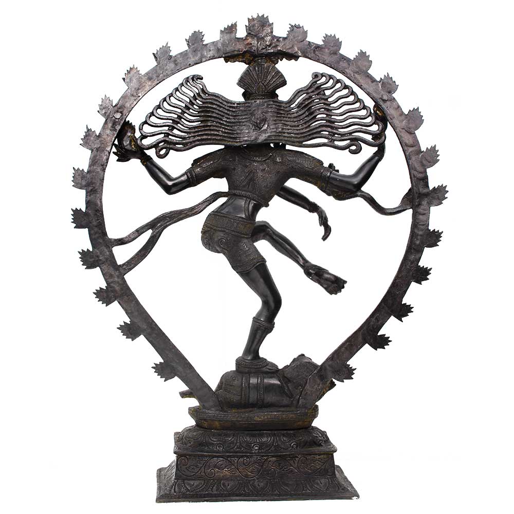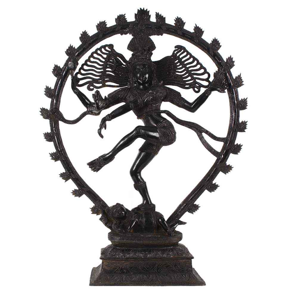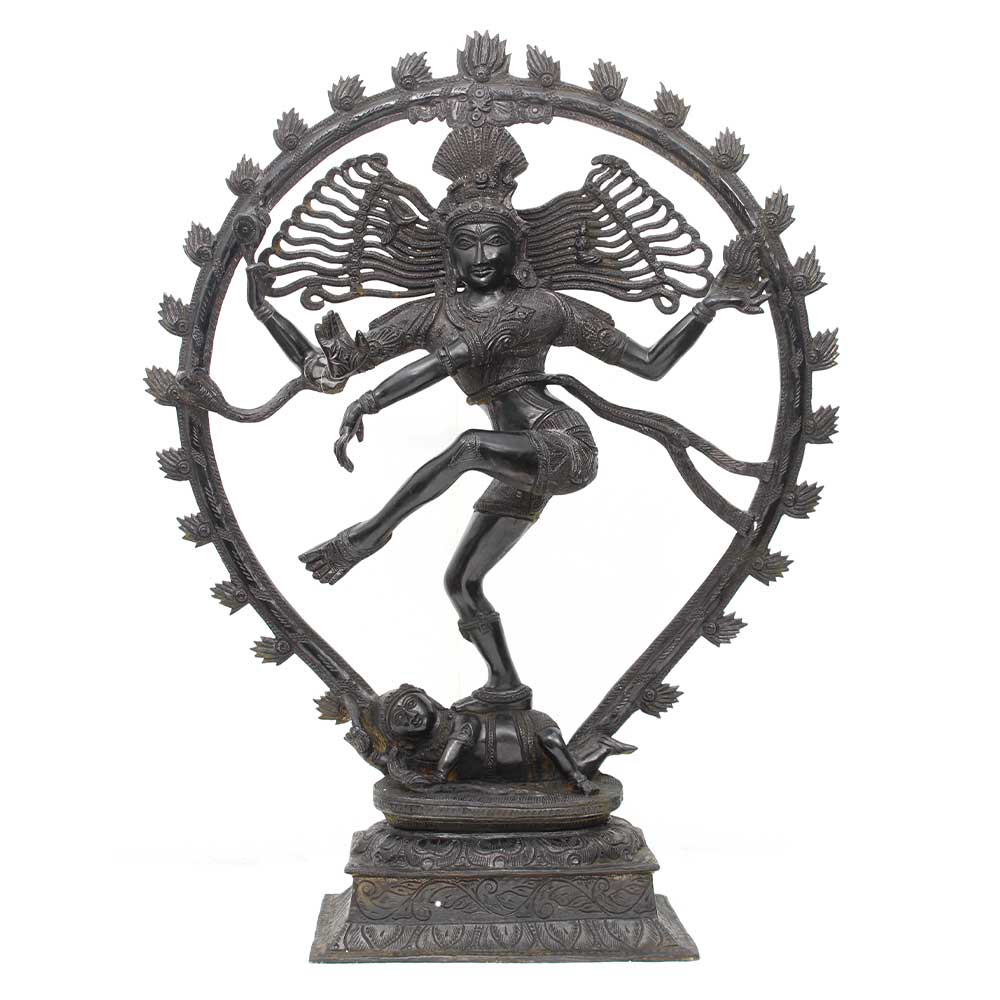 The natraja sculpture in pure aluminium with black patina is thought to represent Shiva as the source of all movement throughout the cosmos, represented by the arch of flame. Nataraj represents Shiva or Shiv doing tandav. This Natraja statue is crafted with excellent precision and is a ideal gift for your near and dear ones.