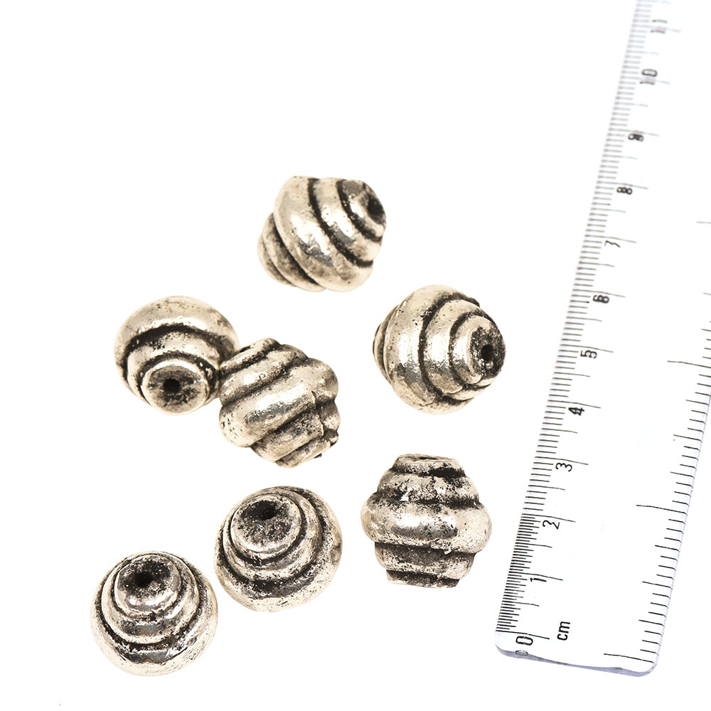 Silver Aluminium Loose Concave Bicone Shape Swirl Design Jewelry Beads (3 in Pack)