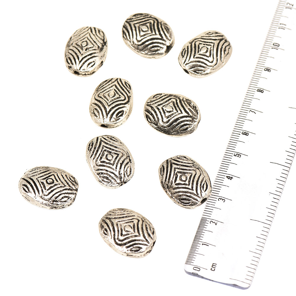 Silver Aluminum Loose Engraved Geometric Design Coin Shaped Jewelry Beads (5 in Pack)