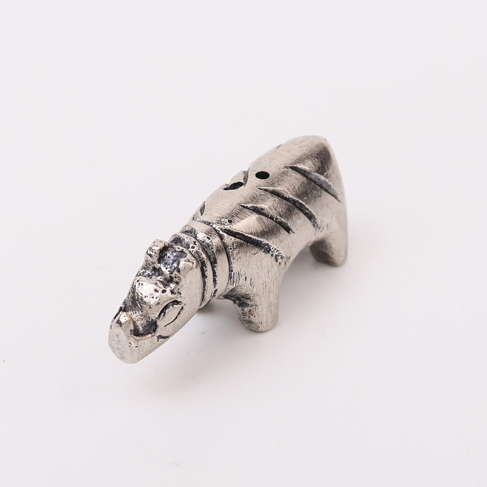 • Silver Brass Hippo Incense Stick Holder