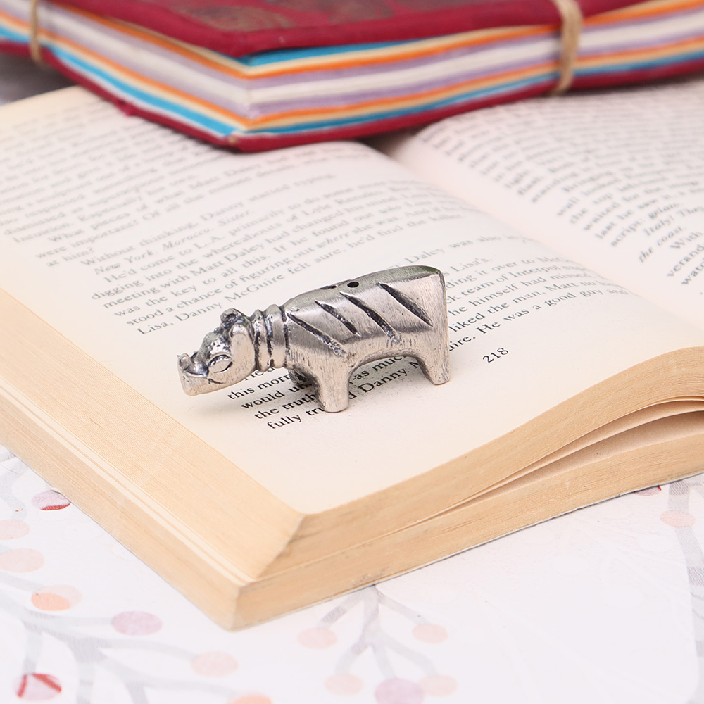 Silver Brass Hippo Incense Stick Holder
