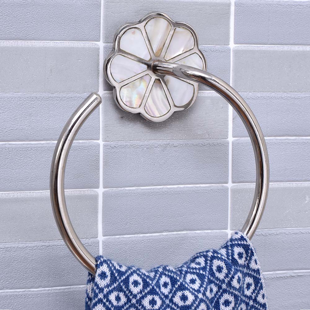 The Silver Brass Mother Of Pearl Towel Ring is suitable for both contemporary and classic bathroom settings. Its refined design is perfect for master bathrooms, guest bathrooms, or powder rooms, adding a lavish element to any area.