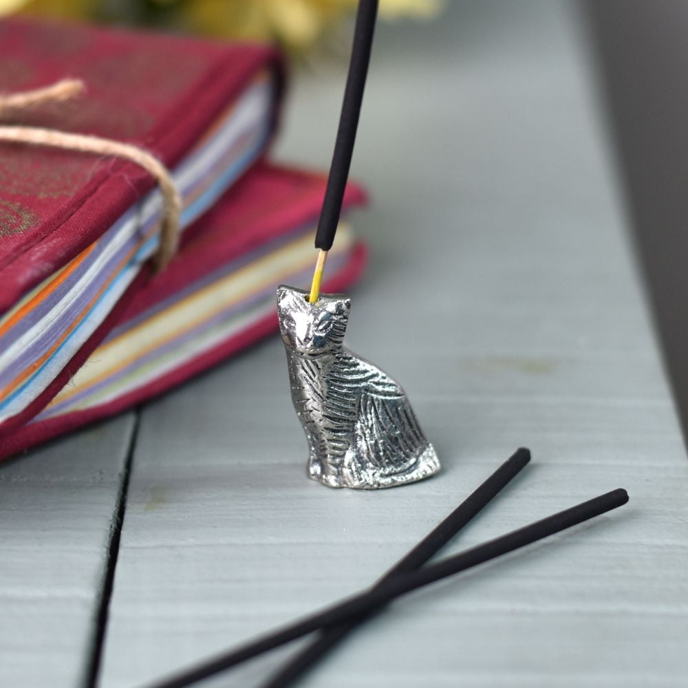 • Silver Brass Sitting Cat Agarbatti Holder Stand
