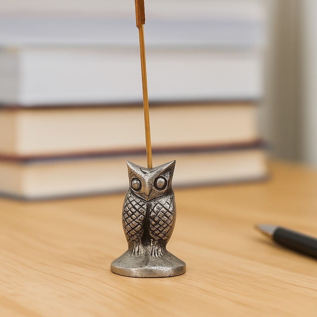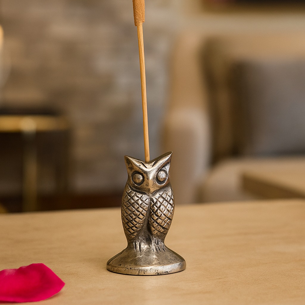 The Silver Brass Standing Owl Incense Stick Holder is more than just an accessory; it’s a piece of art. The craftsmanship of the owl sculpture adds a layer of sophistication to your space, transforming a simple incense holder into an eye-catching focal point. The fine detailing, from the feathers to the face, captures the essence of the owl, making it both functional and beautiful.