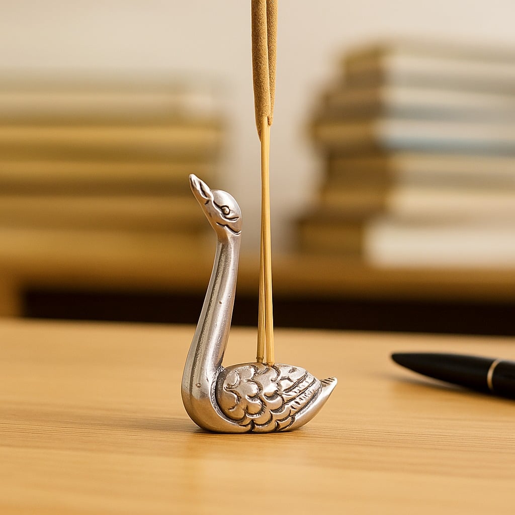 • Silver Brass Swan Decorative Incense Holder Paper weight