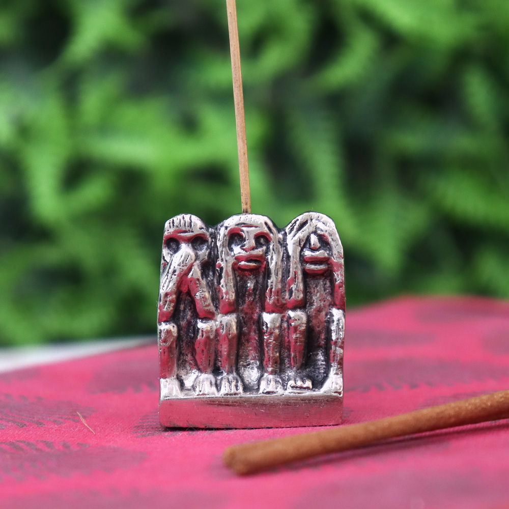 • Silver Brass Three Monkey Agarbatti Holder Stand