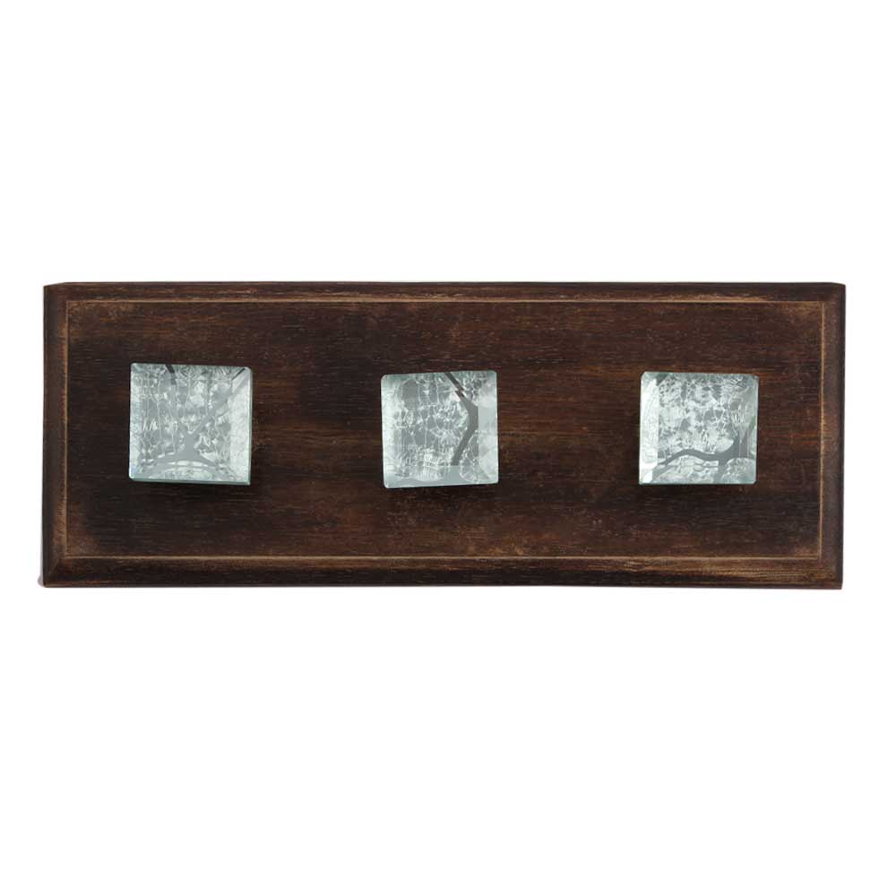 Silver Crackle Square Cut Flat Glass Wooden Hooks