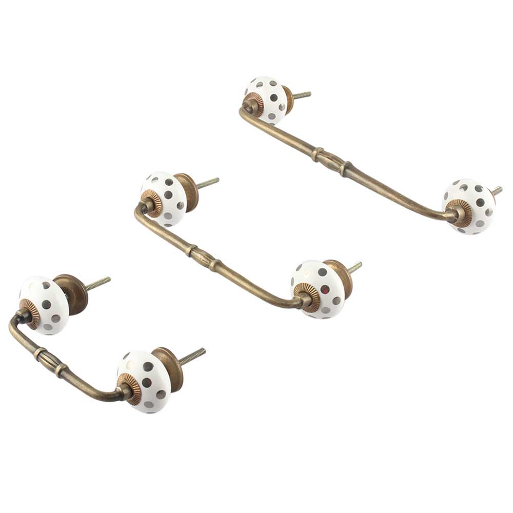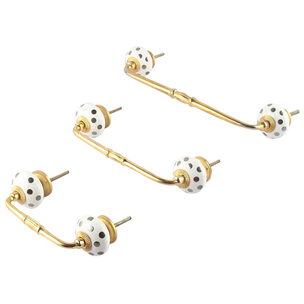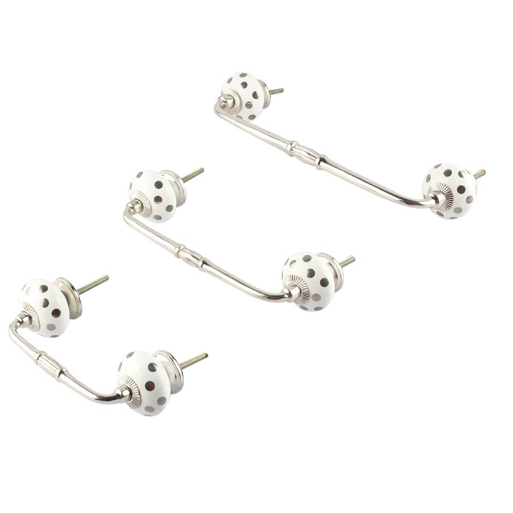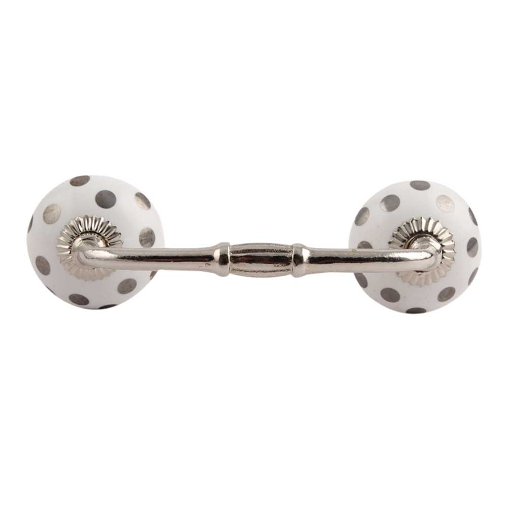 Silver Dot Ceramic Bridge Handle. Ideal for Drawer, Dresser, Cabinet, Wardrobe, Cupboard and Almirah.