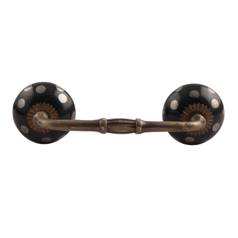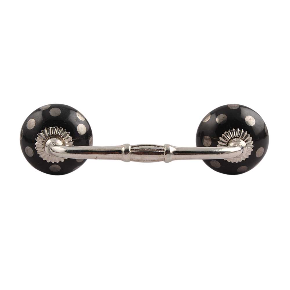 Silver Dot Ceramic Bridge Handle. Ideal for Drawer, Dresser, Cabinet, Wardrobe, Cupboard and Almirah.