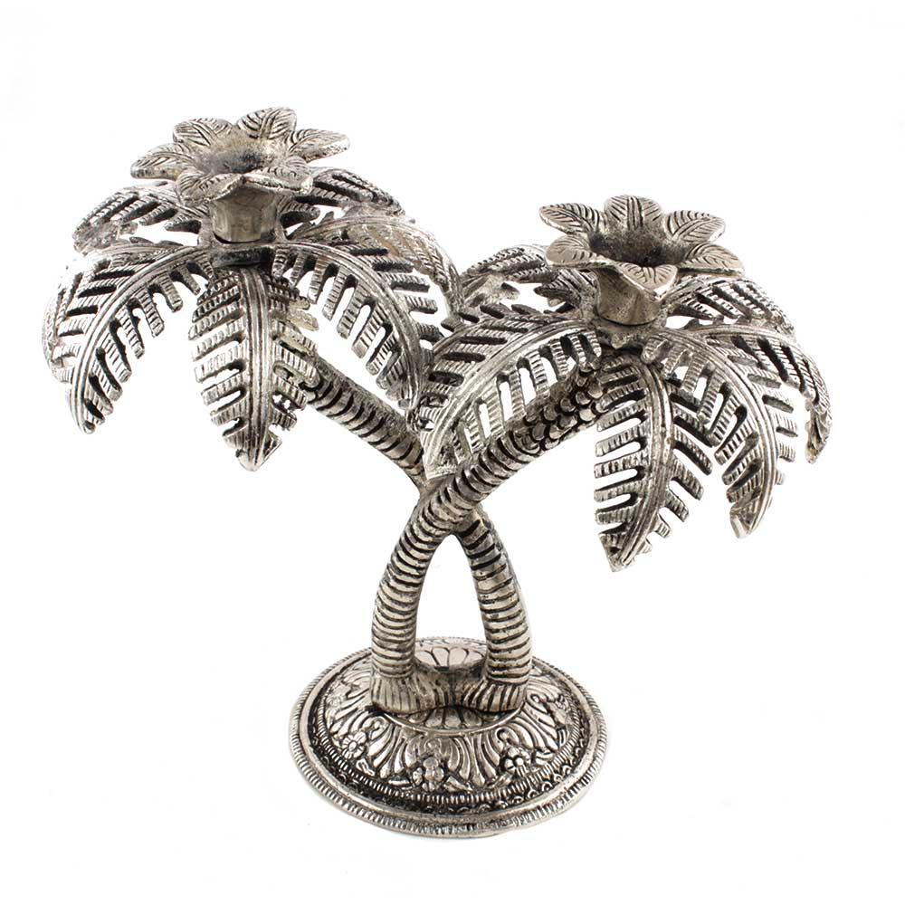 • Silver Double Palm Tree Aluminium Candle Stand