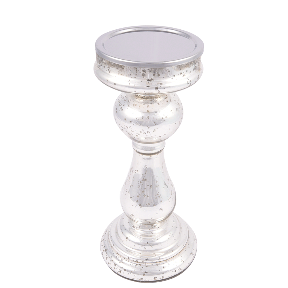 Silver Glass Pedestal Pillar Candle Holder.