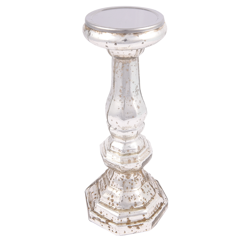 Silver Glass Pillar Candle Holder.