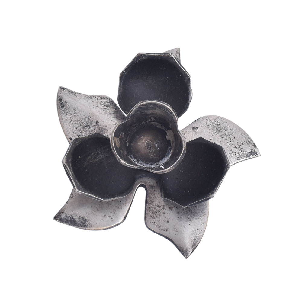 The Silver Iron Blooming Lotus T-lite Holder is a beautiful and unique piece of décor that is perfect for adding a touch of tranquillity and serenity to any home. This T-lite holder is crafted from black iron, giving it a rustic and authentic, stylish, and timeless feel. One of the standout features of thisT-lite holder is its intricate lotus flower design. The lotus petals are arranged in a symmetrical pattern, creating a sense of balance and harmony that is both calming and soothing. The lotus flower has long been a symbol of purity and enlightenment, making this holder a meaningful addition to any space. The holder is designed to hold a single T-lite candle, making it ideal for use in various settings. It can be used as a centrepiece for a dining table or as a decorative accent for a shelf or mantelpiece. The soft glow of the T-lite creates a warm and inviting atmosphere that is perfect for entertaining guests or simply relaxing in the comfort of your home. One of the benefits of this tealight holder is its durability. The holder is made from sturdy iron, ensuring it will last for years. Overall, the Black Iron Blooming Lotus Tealight Holder is a beautiful and elegant addition to any home. It is a perfect gift for someone who loves yoga or meditation or enjoys creating a peaceful atmosphere in their home. Its intricate lotus flower design and practical functionality will become a cherished part of your décor for years.