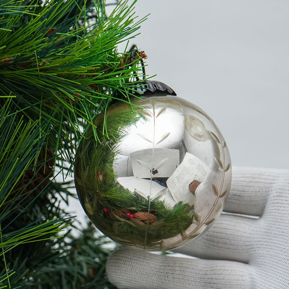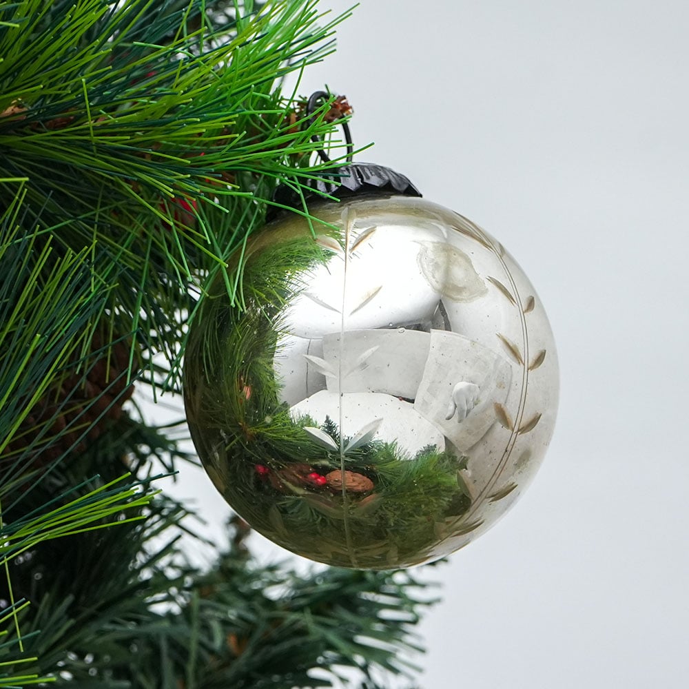 • Silver Leaf Round Mercury Glass Christmas Ornament