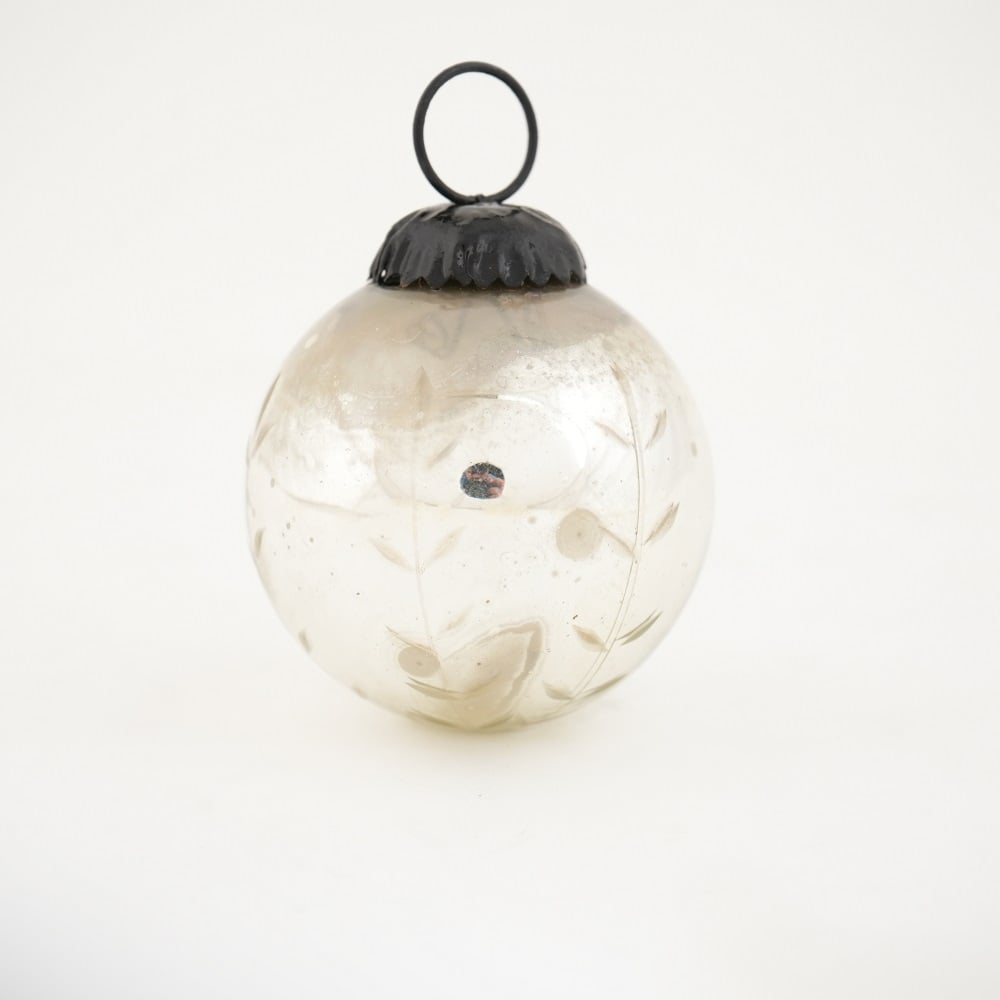 Silver Leaf Round Mercury Glass Christmas Ornament