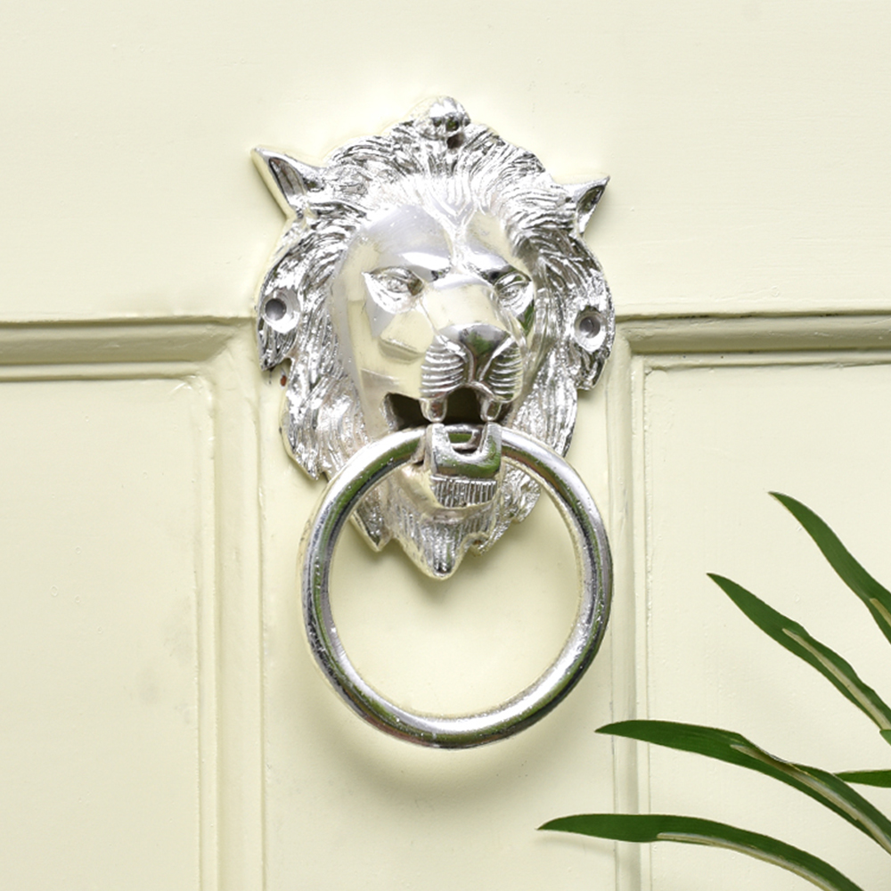Silver Lion Door Knocker-2. Ideal for your main doors, windows, furniture, cabinets, almirahs, etc.