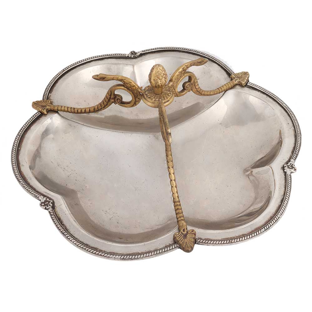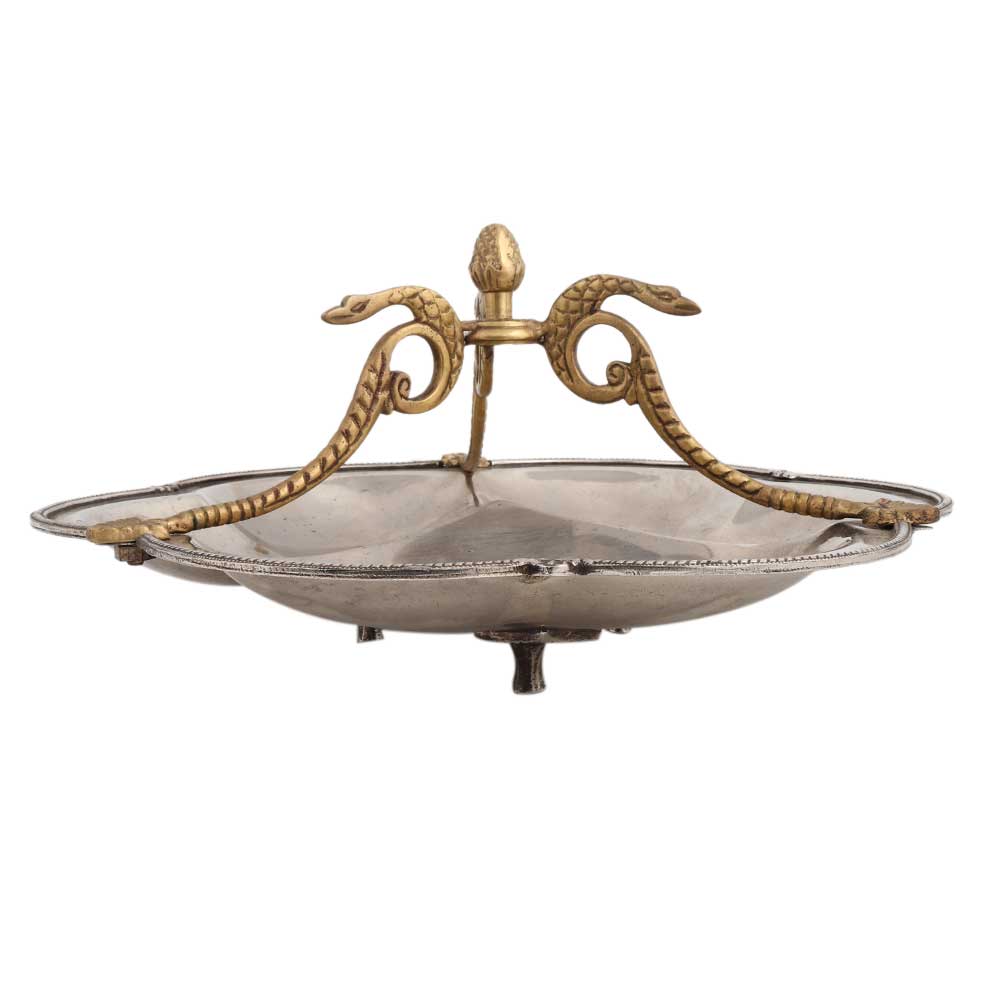 • Silver Metal Serving Dish With Golden Snake Handles