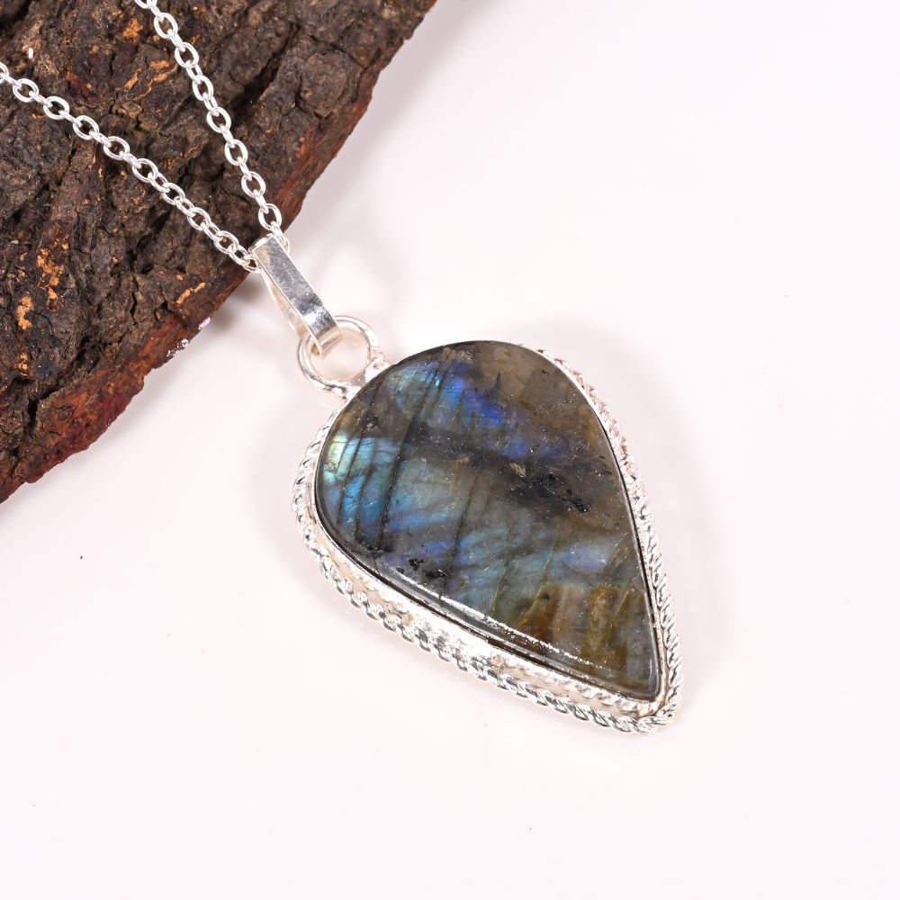 The Silver Plated Brass Pear Shaped Labradorite Necklace for Women is a refined expression of natural beauty and understated elegance. Crafted in brass and finished with smooth silver plating, this necklace highlights a pear-shaped labradorite gemstone admired for its shifting flashes of blue, grey, and subtle iridescence. The 18-inch length allows the pendant to sit gracefully at the neckline, making it ideal for both everyday wear and special moments. Designed for women who value meaning as much as style, this piece feels calm, elegant, and personal.
