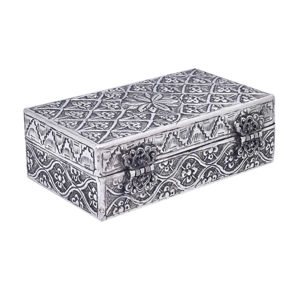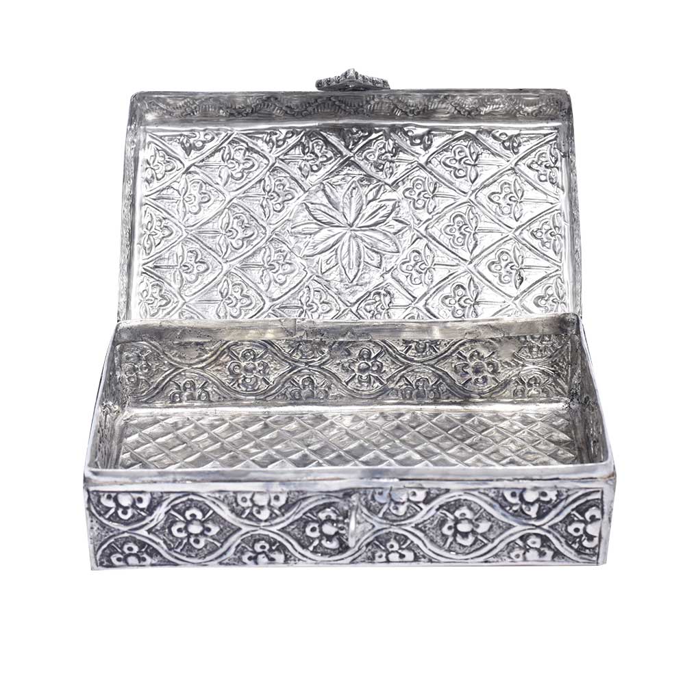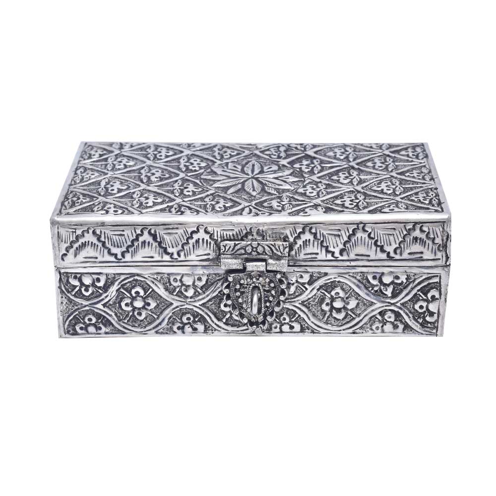 A silver plated Jewelry box is a classic and elegant storage solution for all types of jewelry. The box is made with a silver plating that gives it a stunning and sophisticated appearance. The size of the box makes it ideal for storing a variety of items, from necklaces and bracelets to earrings and rings. The interior of the box is lined with a soft material that protects the jewelry and prevents it from scratching or tarnishing. The silver plating is durable and will not easily wear off, ensuring that the box will look as good as new for many years to come. This jewelry box is the perfect gift for a loved one or a treat for oneself and is sure to be treasured for years to come.
