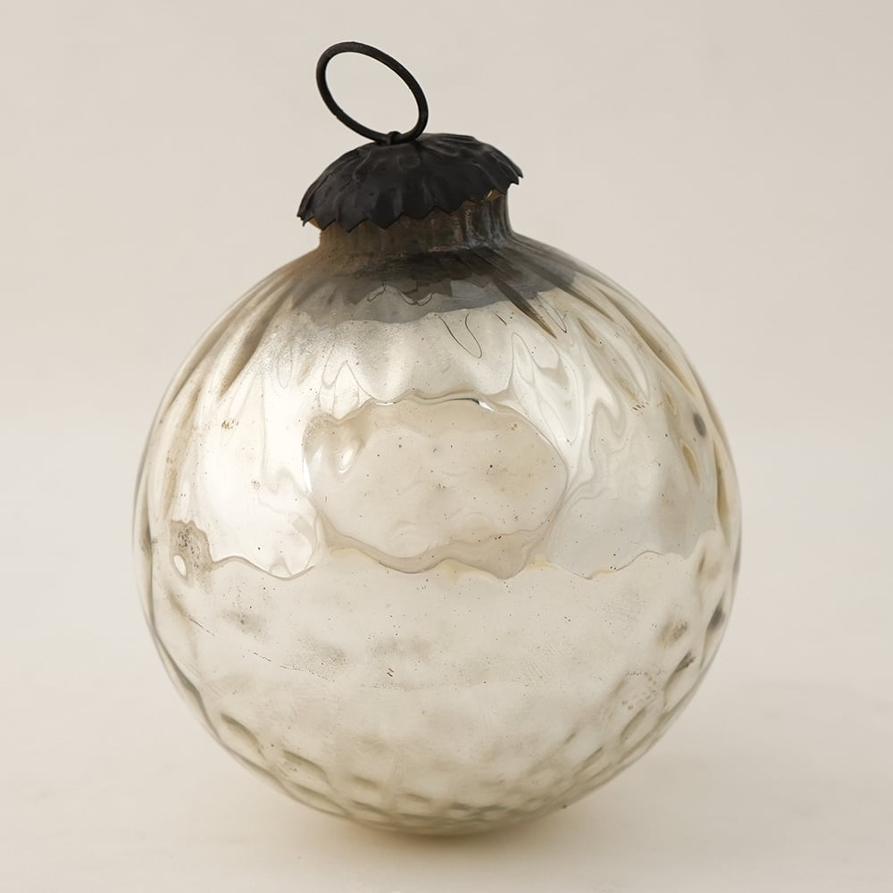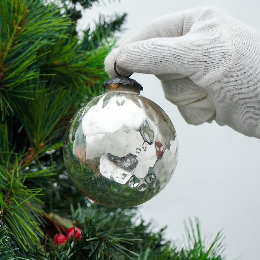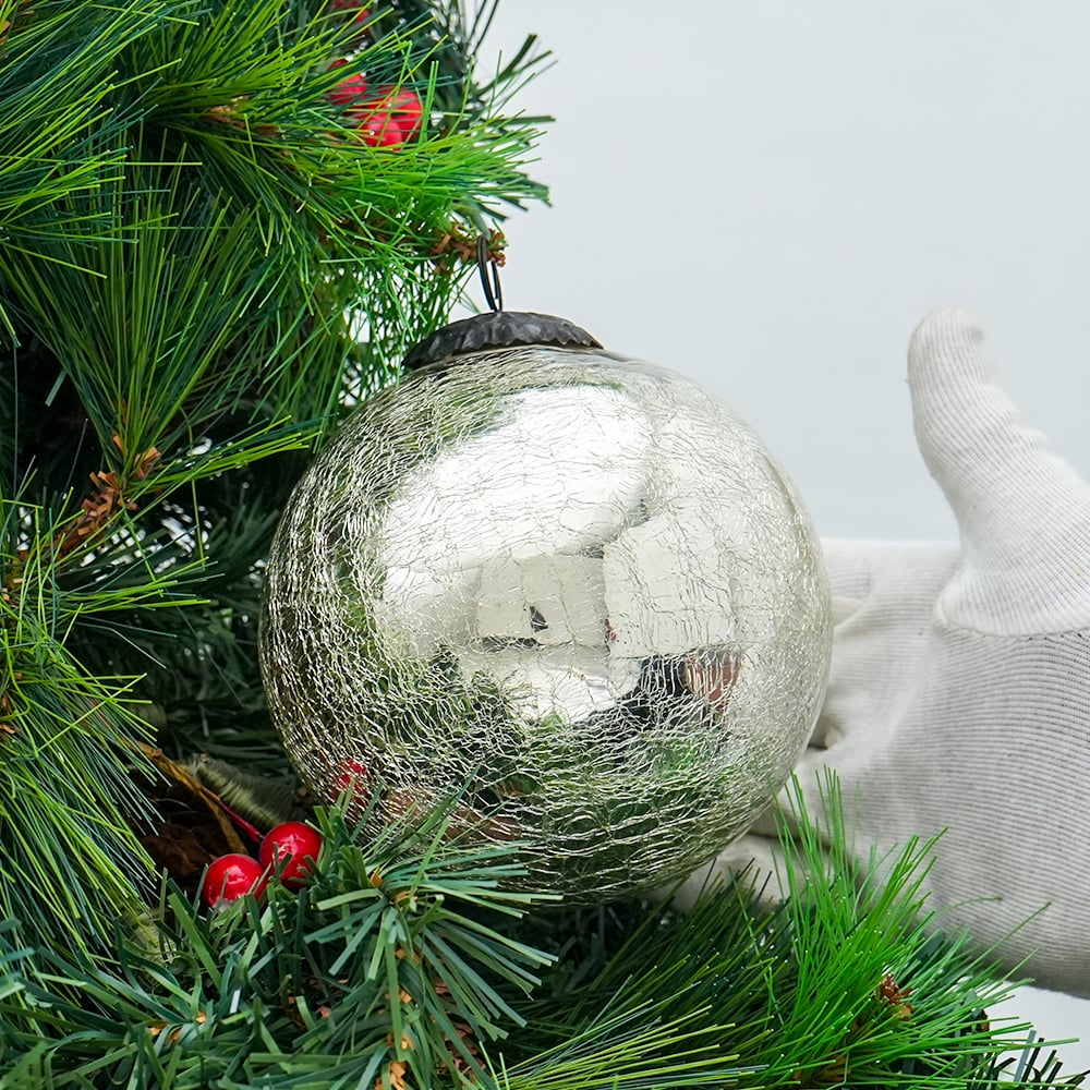 • Silver Round Glass Hanging Ornament For Christmas Tree