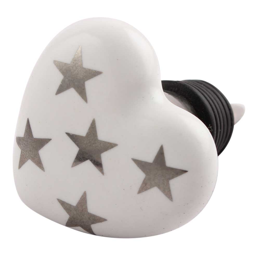 Silver Star Heart Ceramic Wine Stopper.zinc alloy wine bottle stopper with attractive Jute Bag Packaging.