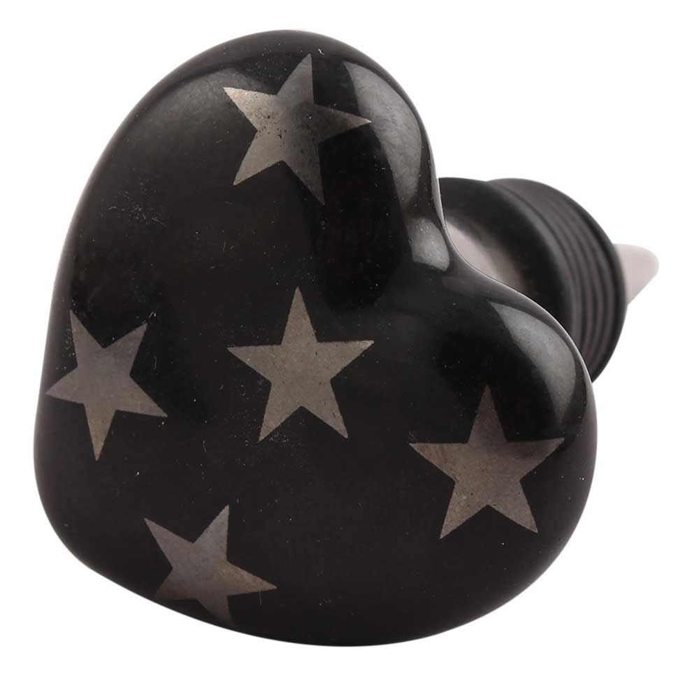 The Silver Star Black Heart Wine Stopper is made from high-quality ceramic, ensuring both longevity and an eye-catching design. The black heart is smooth and glossy, while the silver star shines brightly against the dark backdrop, creating a striking contrast. This stopper is perfect for those who appreciate modern, stylish accessories that stand out.