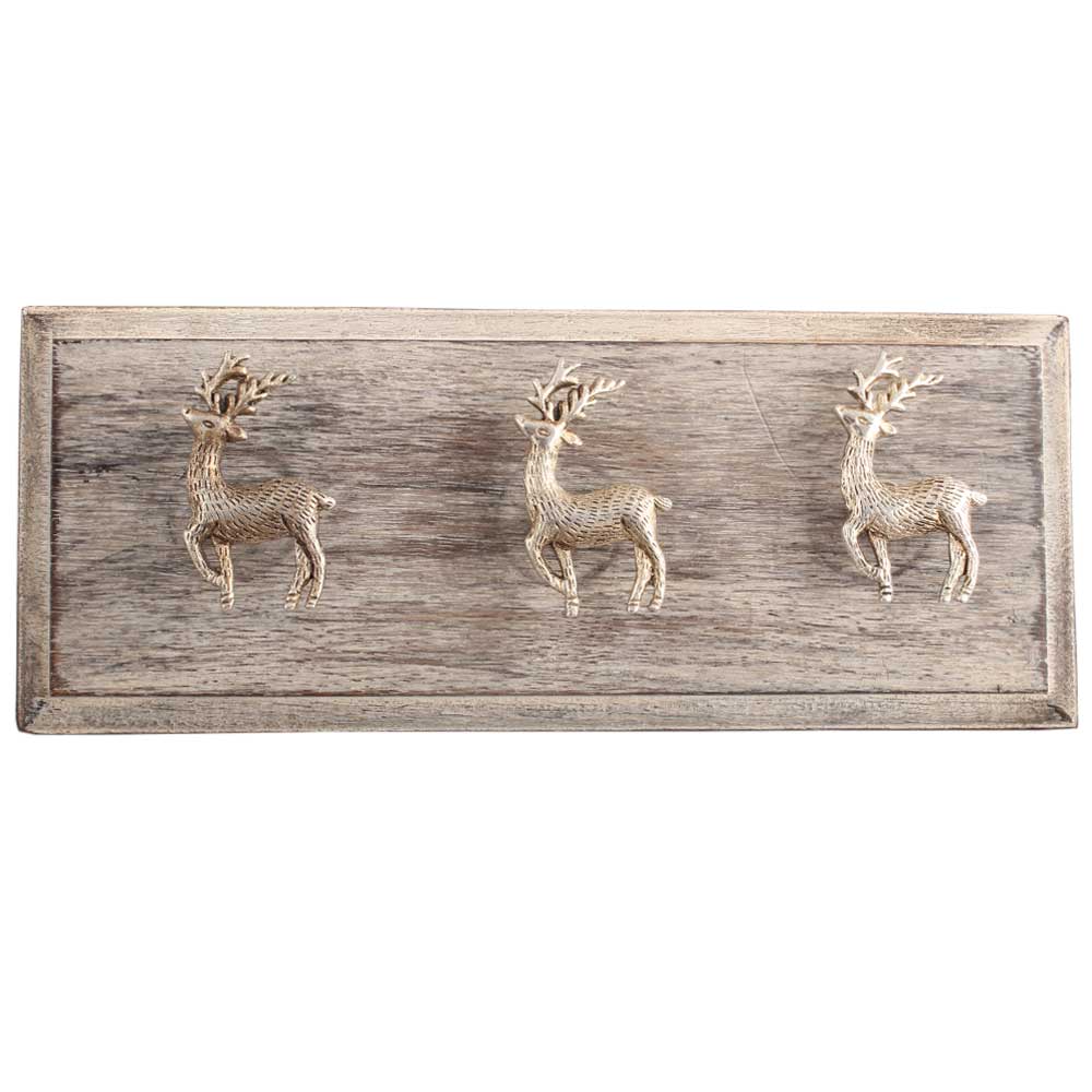 Silver Swamp Deer Brass Wooden Hooks