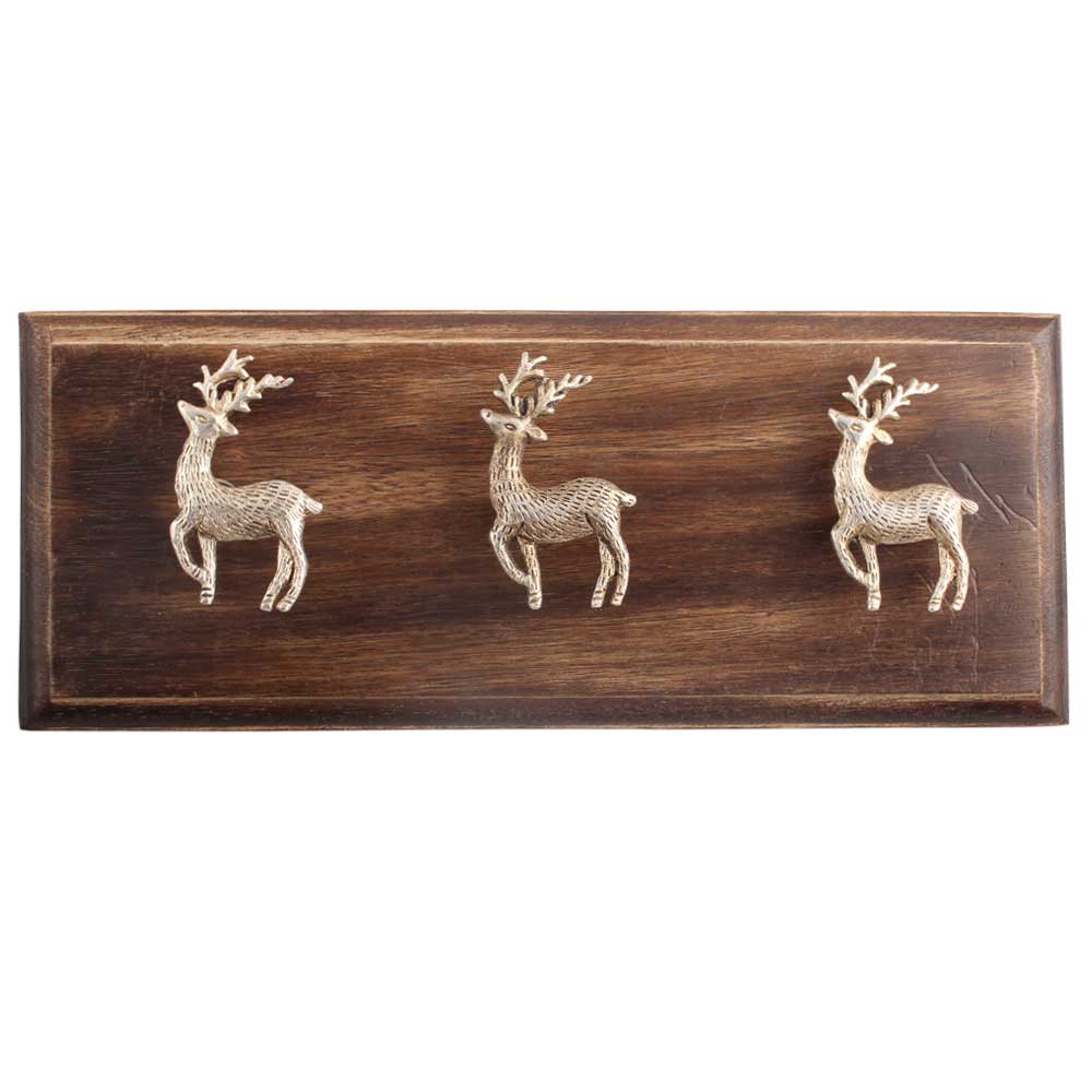 Silver Swamp Deer Brass Wooden Hooks