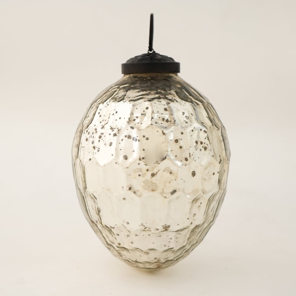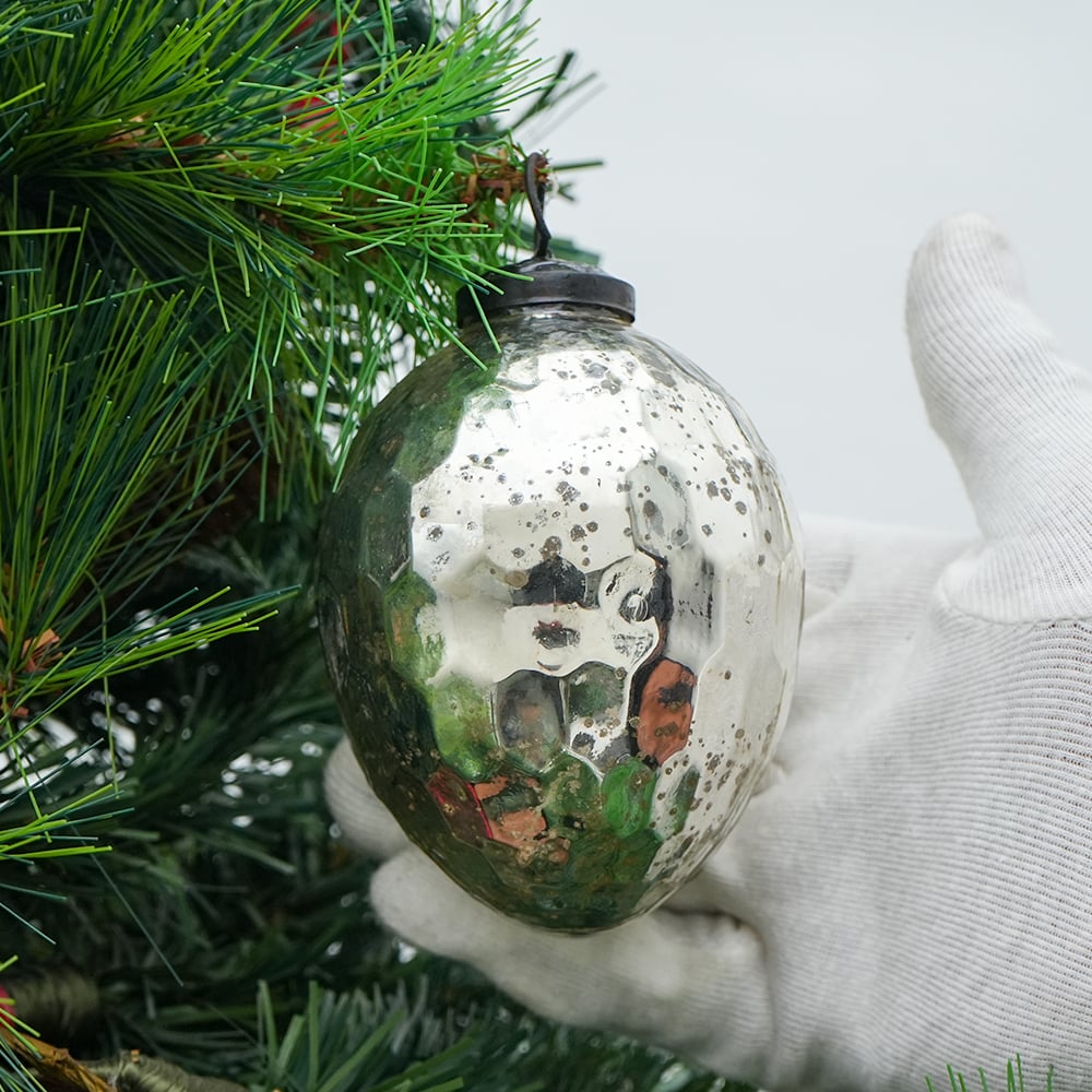 • Silver Vintage Avocado Shaped Glass Christmas Ornament