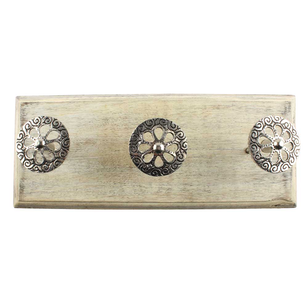 The Silver Wheel Flower Wooden Hook is a beautifully handcrafted wall hook that merges metallic elegance with natural warmth. Featuring a detailed silver-toned metal flower in a wheel design, mounted on a smooth Natural wood base, this decorative hook is designed to bring both charm and practicality to your home. Its unique shape, artisanal texture, and refined finish make it a functional accent piece perfect for anyone who appreciates timeless details and sturdy craftsmanship.