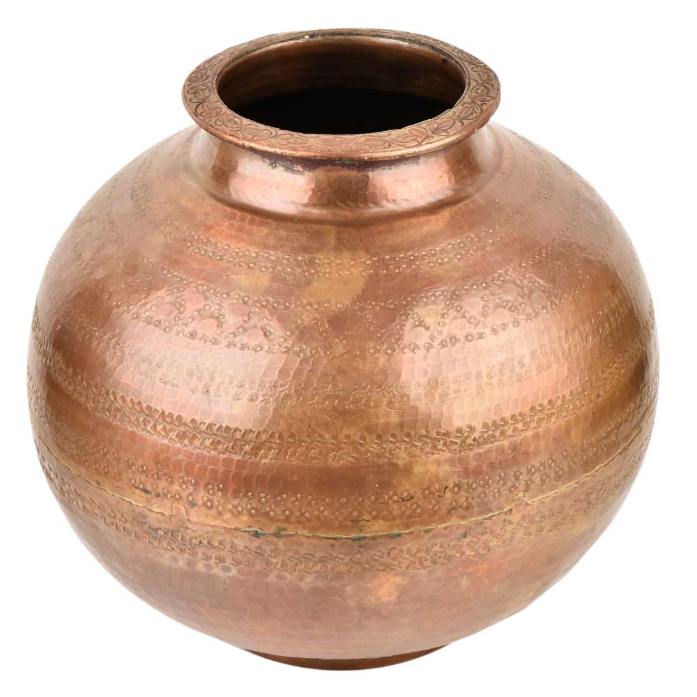 • Simple Engraved Brass Bulbous Copper Finish Holy Water Pot