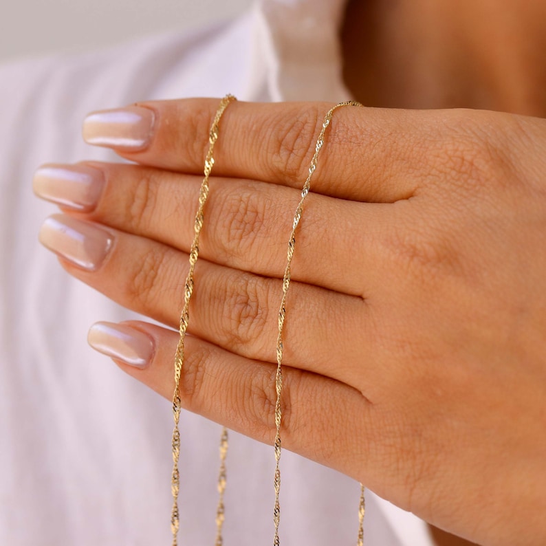 Wipe the chain gently after each wear to maintain the gold-plated shine and keep the links smooth and bright.