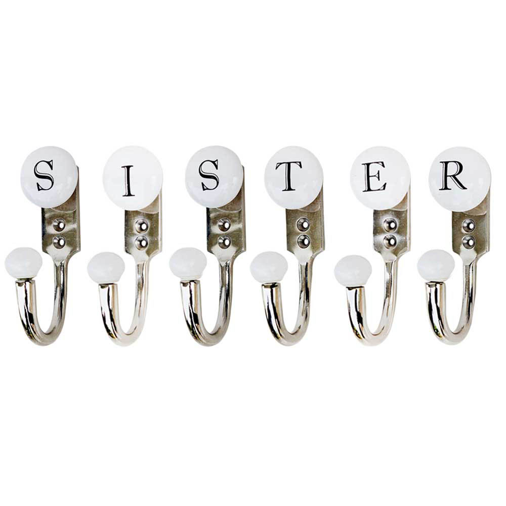 SISTER white and black alphabet hooks (combo pack). When put on wall or cabinet it is an art in itself. This hook is strong enough to hold your keys, tea cups, hand towels, cloths etc.