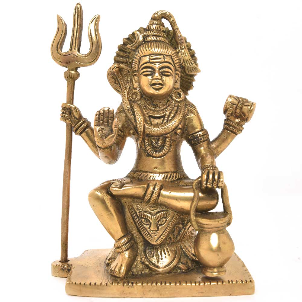 • Sitting Brass Statue of Lord Shiva and Trishul Kamandal Dholak