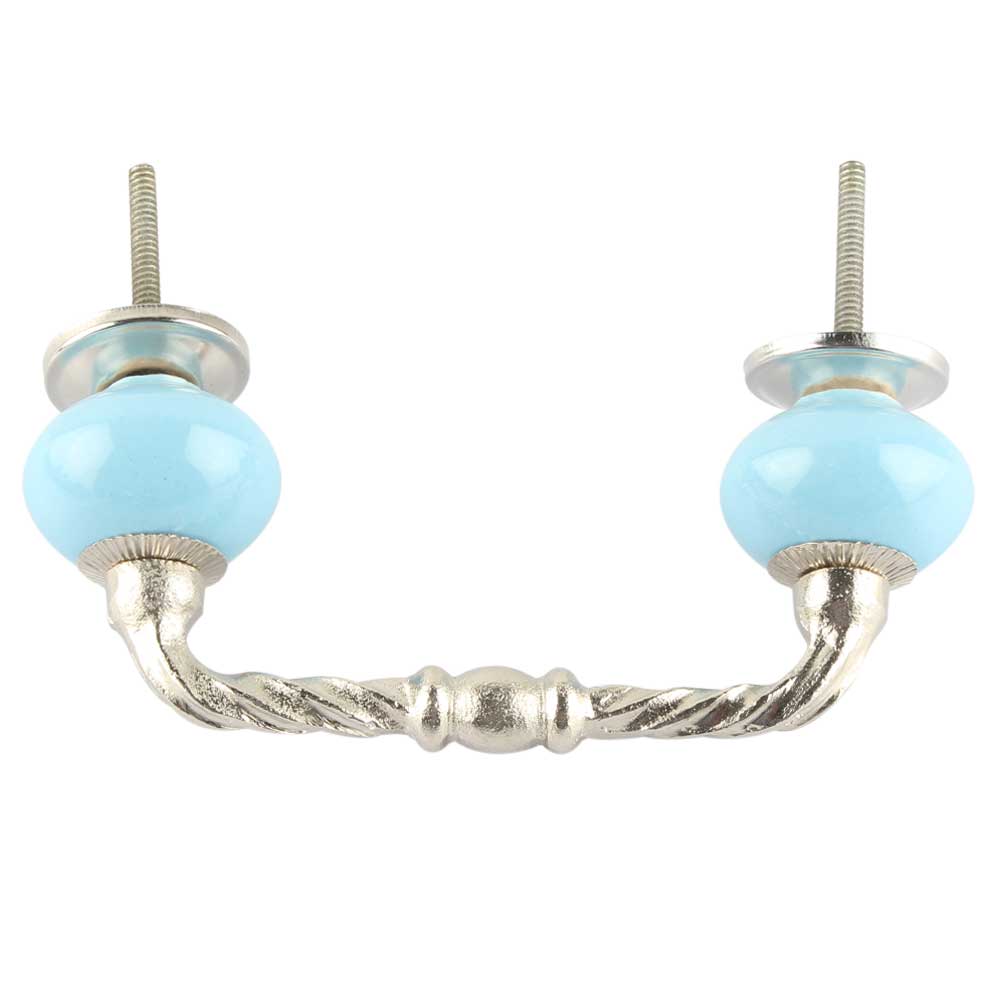 Sky Blue Ceramic Cut Bridge Handles. Ideal for Drawer, Dresser, Cabinet, Wardrobe, Cupboard and Almirah etc.