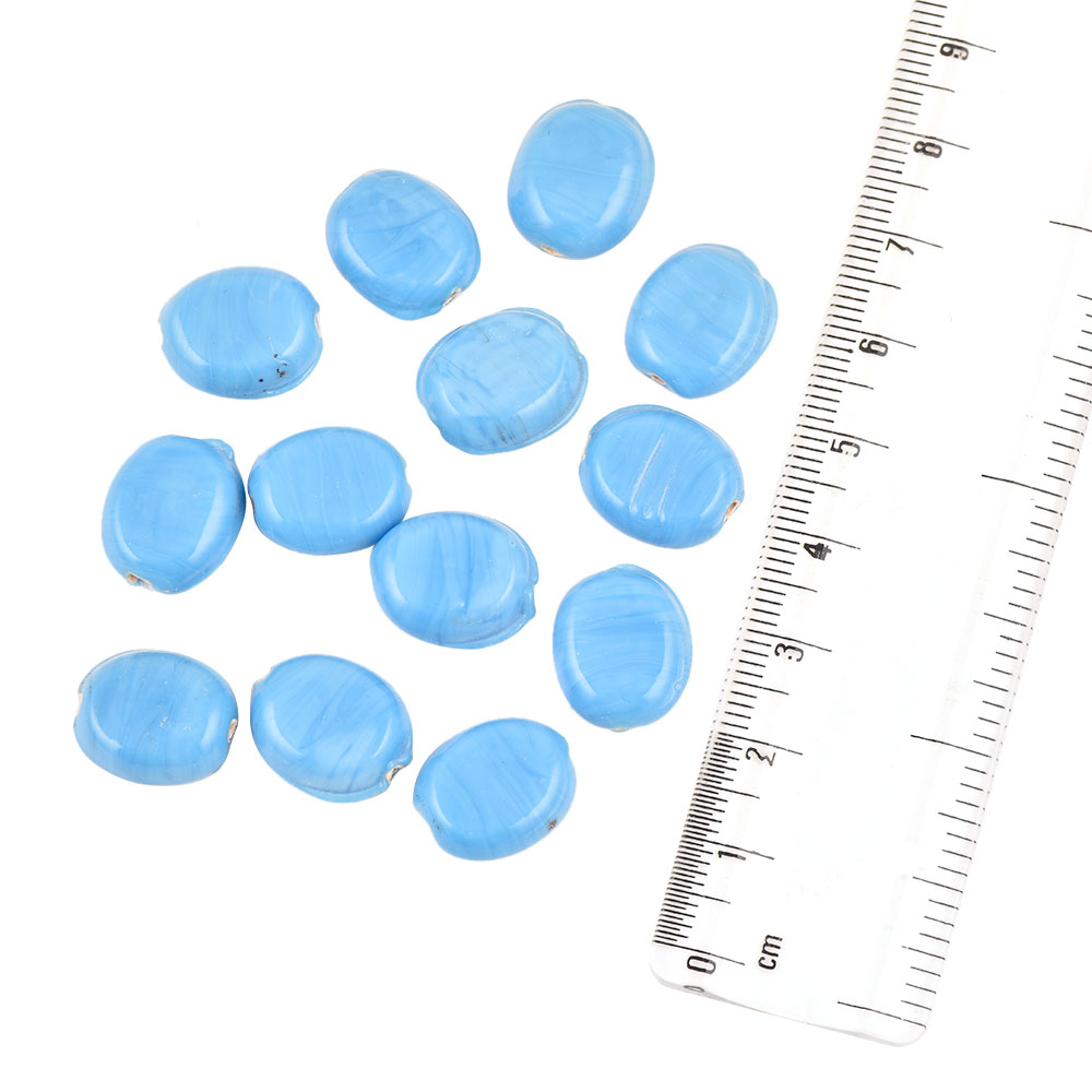 Sky Blue Coin Big Oval Shape Handmade Loose Glass Jewelry Making Beads (12 in Pack)