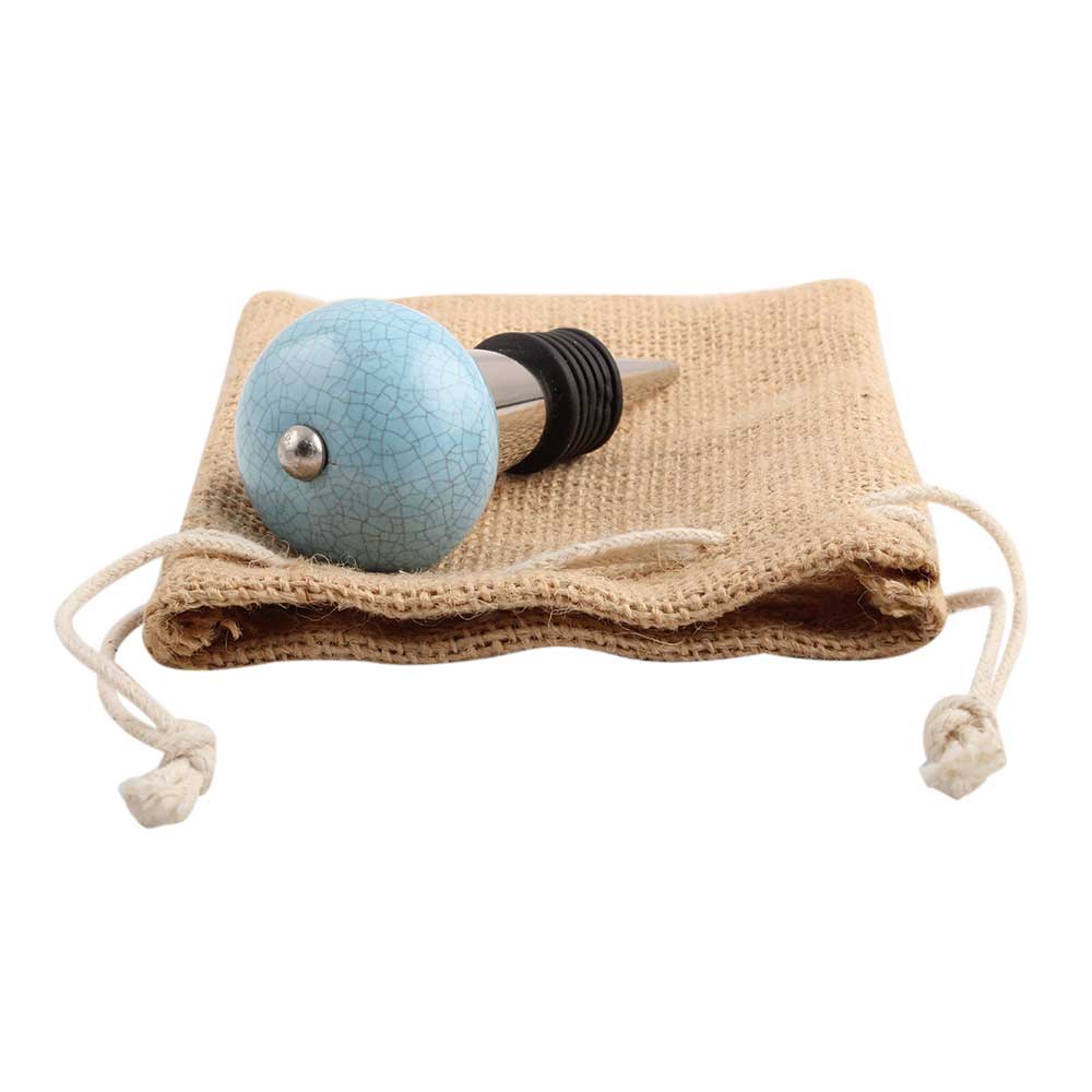 Sky Blue Crackle Ceramic Wine Stopper.zinc alloy wine bottle stopper with attractive Jute Bag Packaging.
