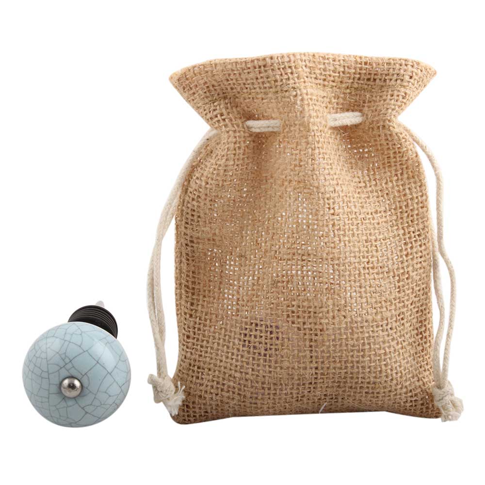 Sky Blue Crackle Ceramic Wine Stopper.zinc alloy wine bottle stopper with attractive Jute Bag Packaging.