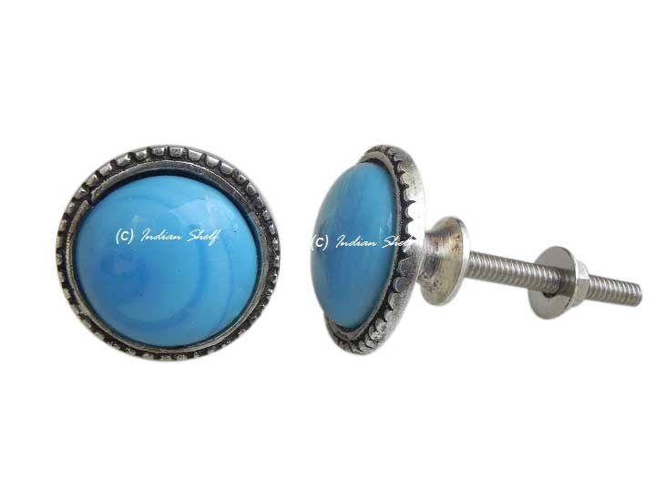 Sky Blue Glass Metal Knobs