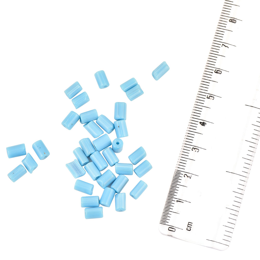 Sky Blue Hand painted Cylinder Shaped Loose Glass Beads For Making Jewelry (12 in Pack)